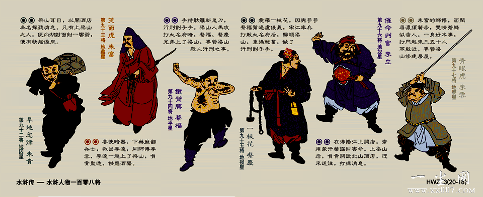 《水浒传》作于元末明初,是中国历史上第一部用白话文写成的章回小说,是中国四大名著之一。北宋末年,宋徽宗昏庸、奸臣当道,陷害忠良,弄得民不聊生,许多正直善良的人被逼落草为寇,一百零八条好汉聚义梁山泊,他们或是智慧超群,有勇有谋,或是除暴安良,行侠仗义,或是大义凛然,忘我行义的好汉,或是忠义的豪杰,为天下人所拥护。一部《水浒传》给我们塑造了许多家喻户晓的英雄,耳熟能详的故事。