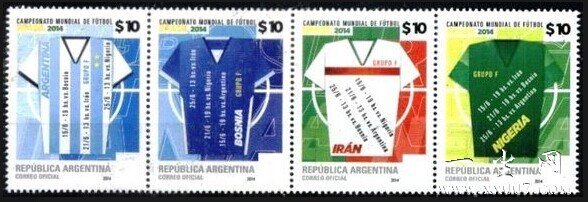 来源:张继平集邮博客 ![]() 阿根廷邮政发行2014巴西世界杯主题邮票,邮票以球衣为主要元素展现。 阿根廷国家男子足球队是世界上最成功的国家队之一,曾19次夺取过国家队重大赛事的冠军(和乌拉圭同享纪录),包括两次称雄世界杯(1978、1986年)、14次夺得美洲杯、两次获得奥运男足金牌(2004、2008年)。