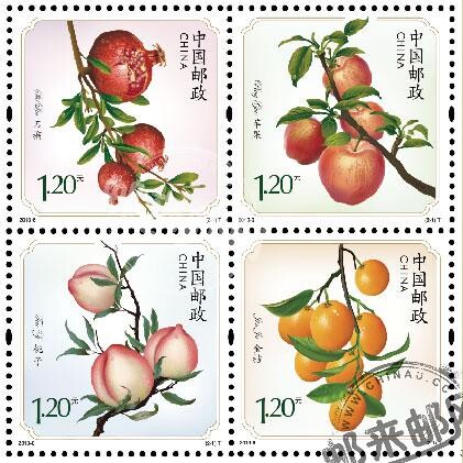 中国邮政定于7月15日发行《水果(一)》特种邮票一套4枚,全套面值5.40元,邮票规格33毫米×33毫米,每版20枚,整版规格200毫米×170毫米。同时有版式二,整版2套,每版售价10.80元,规格190毫米×110毫米。设计者李志宏,由河南省邮电印刷厂胶版印制。邮票内容是苹果、桃、石榴和金橘。
