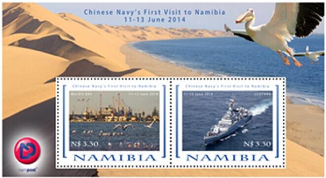 纳米比亚邮政2014年6月11日发行中国军舰的邮票,以庆祝中国海军[第十六批护航编队]首次访问纳米比亚(2014年6月11日--6月13日)。这是中纳建交24年来中国海军舰艇首次访问纳米比亚,也是中国海军护航编队首次环非访问的重要一站。
