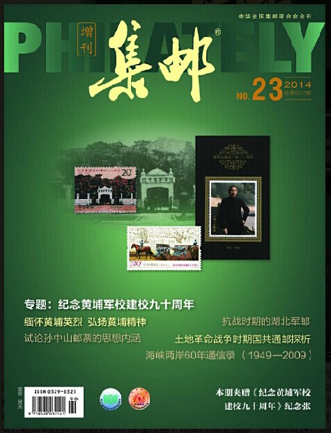 本期增刊以纪念黄埔军校建校九十周年集邮研究为主题,设有黄铺军校与黄铺精神、孙中山与孙中山邮票、国共通邮与海峡两岸通邮、民国邮票与邮史研究及其他、新中国邮票邮史研究、其他研究等栏目。主要文章有,邮说黄埔精神、碧血丹心铸军魂、改3普票的研究、纪120《孙中山诞生一百周年》邮票研究、海峡两岸通邮的艰难历程和重大意义、中华民国首套普通邮票设计思路探研、也谈抱犊崮“土匪邮票”、近年来我国免资邮品的发行趋势与特点、海峡两岸60年通信录(1949-2009)、中国民信局始创时间考释等。