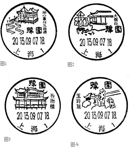 风景名称是风景日戳三要素之一,也可谓体现了风景日戳风景特性。豫园风景日戳将“豫园”风景区名称用大于景点名称的字号单独刻制,且用了繁体隶书。不但挤占了风景日戳的寸金之地,而且有违现行风景日戳标准。这个现象延续了以往风景日戳风格,1990年9月26日启用的豫园风景日戳(参见130915图3),戳上“豫园”两字,与如今启用的风景日戳如出一辙。如果以往豫园风景日戳上的这种现象得到及时的评论,也许如今的戳上就不会再现了吧?这也从一个方面看出我们对风景日戳评论的缺乏。其实风景名称应该是较好处理的,直接取自风景区和景点名称就行了,如“豫园湖心亭与九曲桥”。至于排列可以为两行,也可以是一行。但笔者建议一行,可以减少风景名称文字对戳面图案的干扰,保证戳面的美观,且节省宝贵的方寸之地。至于风景名称的字体,必须使用已有简化写法的长仿宋字体,不得任意简写或改用繁体字。
