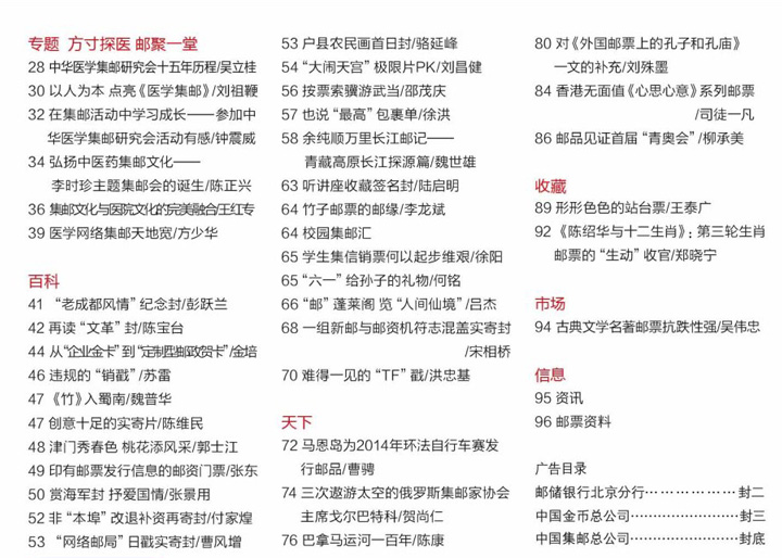 《集邮博览》杂志2014年8月刊即将出刊,上图为8月杂志封面及目录。