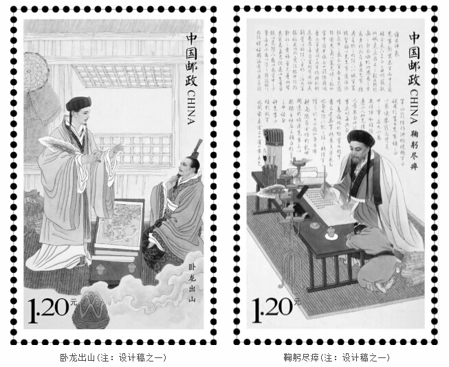 中国邮政即将发行的一枚内容为刘备三顾茅庐与诸葛亮共商天下大计的邮票,最终被命名为《卧龙出山》。