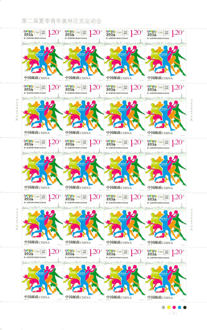 中国邮政定于2014年8月16日发行《第二届夏季青年奥林匹克运动会》纪念邮票1套1枚,面值1.20元,邮票规格30×40毫米,整版20枚,邮票设计师胡中青,邮票将由河南省邮电印刷厂胶版印制。