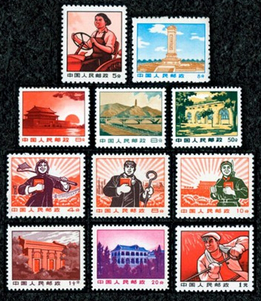普无号邮票共12枚,分四次发行。第一次于 1969年10月1日发行5枚,分别为“工”、“农”、“兵”、“延安”、“天安门”。第二次于1970年1月1日发行2枚,分别为“延安枣园”、“遵义会议会址”。第三次于1970年4月1日发行3枚,分别为“中国共产党第一次全国代表大会会址”、“女拖拉机手”、“人民英雄纪念碑”。第四次于1970年4月20日发行1枚,为“炼钢工人”。这套邮票有诸多差异:①邮票图幅有4种,分别为30mm×24mm、27.5mm×22.5mm、29.5mm×23.5mm、23.5mm×29.5mm.;②印刷版别有胶版和影写版2种;③齿孔度数2种,分别为10度和11.5度,其中齿孔为P10的8枚邮票中发现6枚另有齿孔为11.5度的变异票。这套发行于“文革”期间的普通邮票,从选材、图幅、版别、齿孔、设计风格等诸多方面都有差异,不像是同套邮票,这也反映出了那个特殊年代邮票发行的状况。