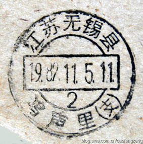 无锡县的鸿声镇,最早的时候好像是叫“鸿声里”,这可以在当初的邮戳里找到痕迹。上图是上世纪80年代初该镇邮政局使用的日戳,下格的地名就是“鸿声里”。当时鸿声镇还是属于天下第一县——无锡县管辖。鸿声镇在无锡市东面,距离市区30多公里。
