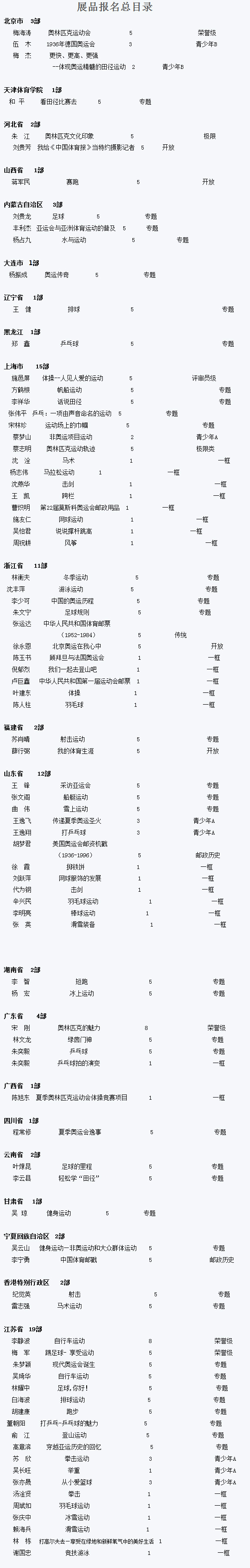 第七届全国体育集邮展览暨2014青奥会集邮展览已经确定在8月15日-17日在南京图书馆举办,此集邮展览为全国性竞赛类体育专项邮展,规模为300国际标准展框。本届邮展共有20个省区市和香港地区参展,有87部展品,313框。