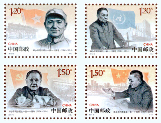 2014年8月22日,是邓小平同志诞生110周年纪念日。中国邮政将于2014年8月22日发行《邓小平同志诞生110周年》纪念邮票一套4枚。