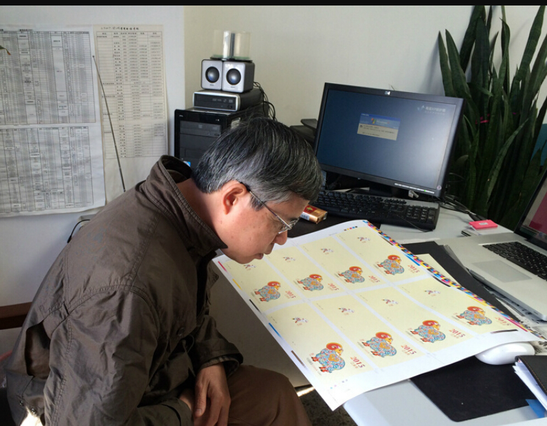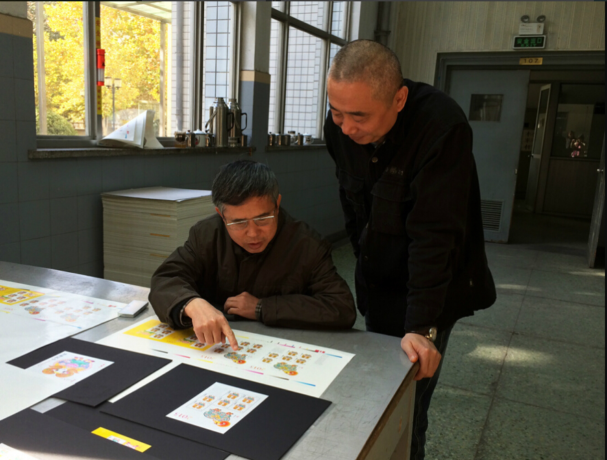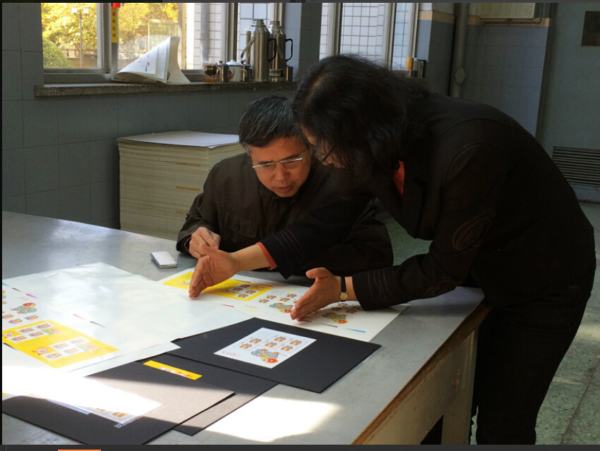 羊年生肖邮票设计者吴冠英老师到印厂查看邮票打样