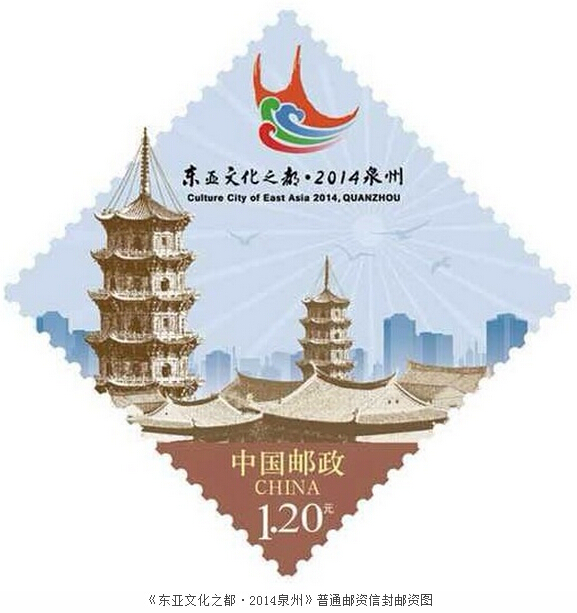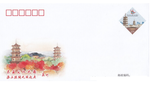 中国邮政定于2014年11月25日发行《东亚文化之都·2014泉州》普通邮资信封1套1枚。详情如下: