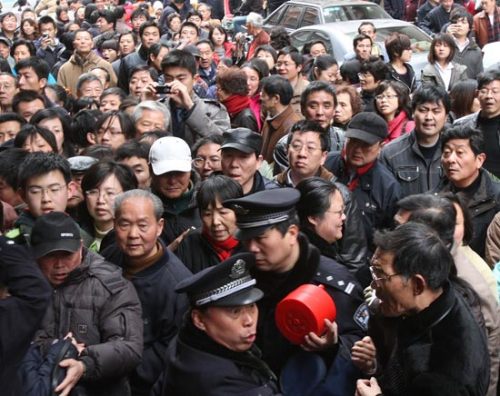 银行门前市民不满
