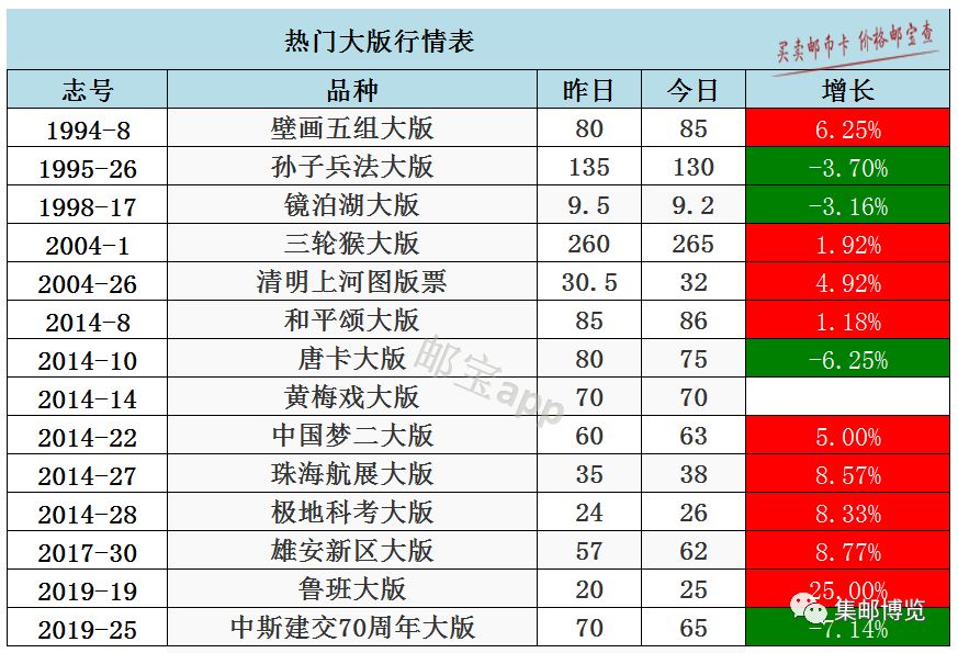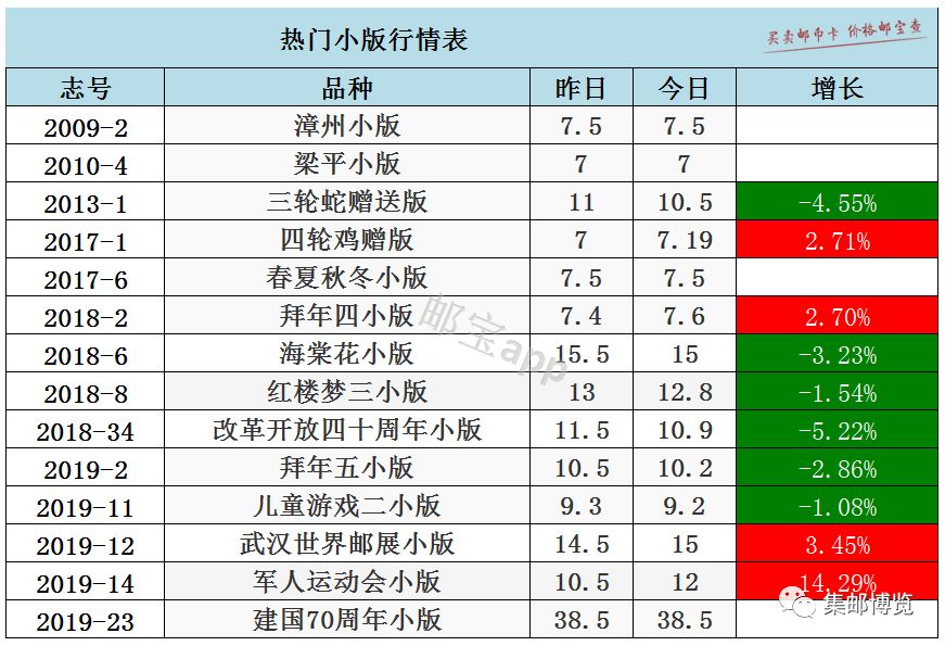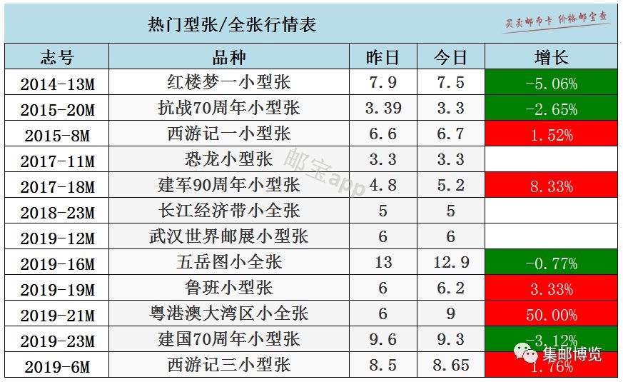 武汉世界邮展小版今日最新价格为15元,昨日价格为14.5元,上涨3.45%。